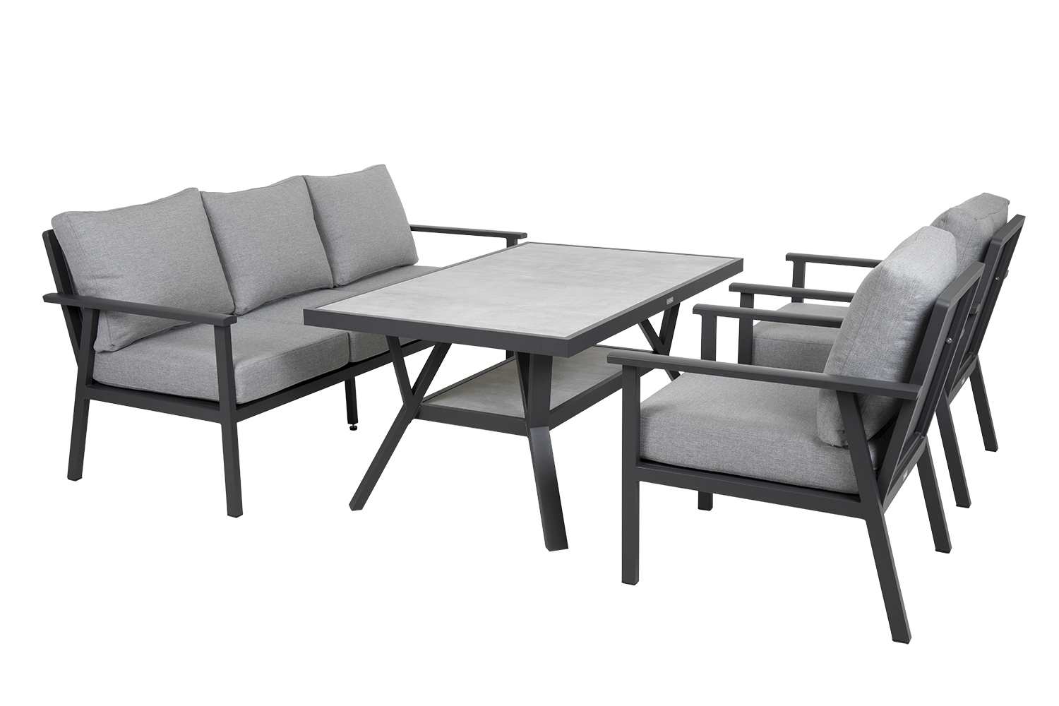 Ein Konzept, das sich ganz treffend mit unserem entzückenden schwedischen Wort "fika" übersetzen lässt. Hier sitzt man entspannt und bequem, wenn auch etwas höher als die untersten Lounge-Gruppen. Ideal für eine einfache Tasse Kaffee oder eine leichte Mahlzeit. Die Tische für Low Dining haben oft einen Höhenbereich zwischen 60 und 68 Zentimetern. Diese Möbel sind oft die perfekte Wahl für Balkone oder Außenbereiche, in denen die Möbel ein breites Anwendungsspektrum haben.