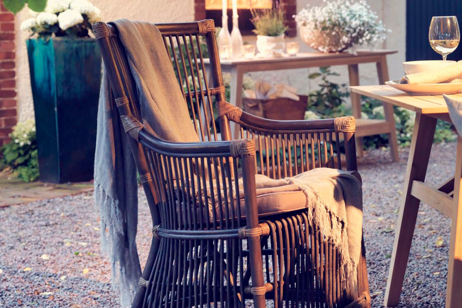"Unsere Möbel aus Naturliches Rattan werden mit großem Geschick von Hand geflochten. Der Lehnstuhl Bonete passt hervorragend zu unseren Tischen aus Teakholz.