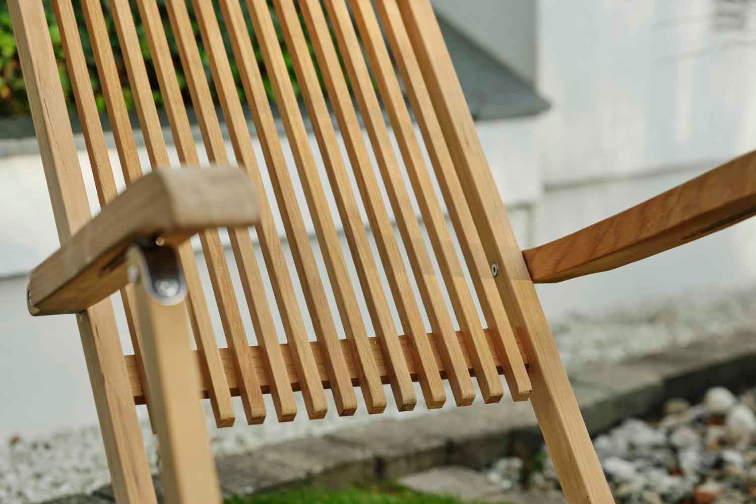 Eine hochwertige Serie mit quer verlaufenden Teakholzrippen als durchgängiges Element. Julita nimmt die Geradlinigkeit des skandinavischen Designs auf und schafft einen gemütlichen Essbereich, der durch seinen Stil auffällt und sich gleichzeitig in die Umgebung einfügt.