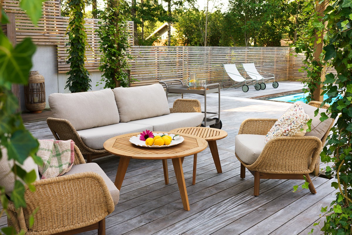 Lily ist eine großzügige Lounge-Serie mit tiefem Komfort und weicher Eleganz für entspannten Luxus. Die extra tiefe Sitzfläche und die prallen Kissen laden zum Ausruhen ein und erzeugen ein umhüllendes Gefühl. Das gedrehte synthetische Rattan in Kombination mit den Teakholzbeinen verleiht einen natürlichen Ausdruck mit einem warmen Charakter.