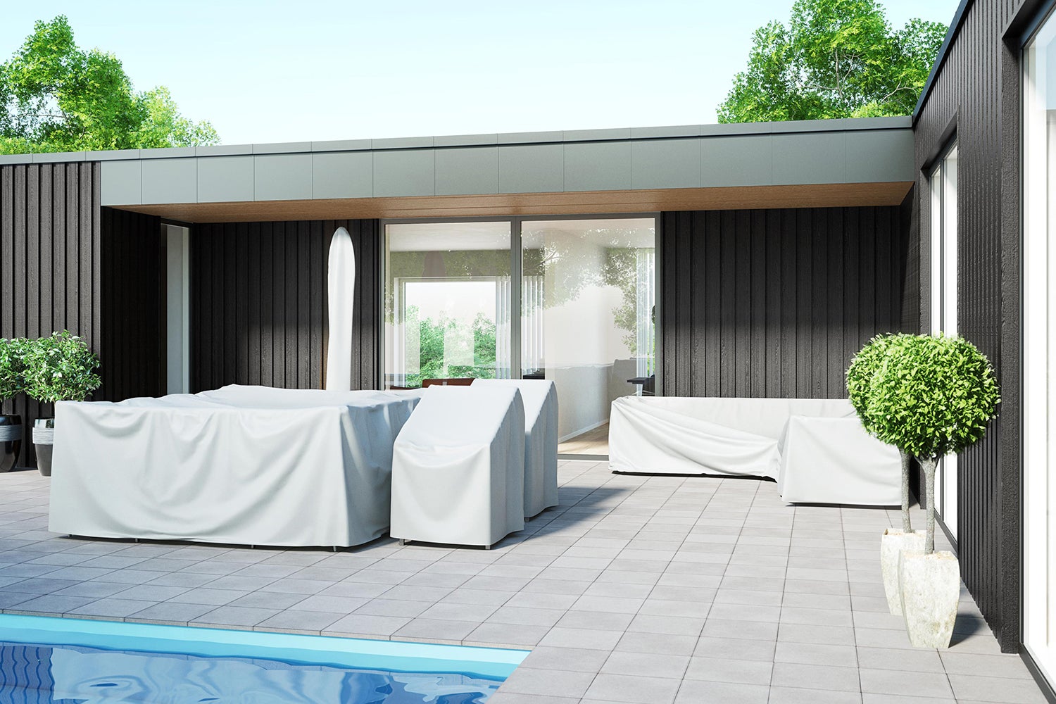 Um das volle Potenzial einer Möbelabdeckung auszuschöpfen, ist es wichtig, die passende Größe zu identifizieren. Wenn die Möbelabdeckung zu eng ist, können bestimmte Teile der Gartenmöbel ungeschützt bleiben und/oder Teile der Abdeckung können gedehnt werden, wodurch unnötiger Verschleiß am Material entsteht. Wenn die Möbelabdeckung zu groß ist, kann sie durchhängen und das Risiko von Wasseransammlungen erhöhen. Mit anderen Worten, eine Möbelabdeckung in der richtigen Größe ist entscheidend, also nehmen Sie sich einen Moment Zeit, um zu messen und zu identifizieren, welche Abdeckung für Ihre Gartenmöbel geeignet ist. Um die passende Möbelabdeckung zu identifizieren, beginnen Sie damit, die Gartenmöbel so anzuordnen, wie sie positioniert sein werden, wenn die Abdeckung verwendet wird. Messen Sie dann alle äußeren Abmessungen unter Berücksichtigung der höchsten und längsten Maße. Bedenken Sie, dass es möglicherweise schwierig ist, genaue Maße zu finden, also wählen Sie die größere Größe, die am nächsten zu den von Ihnen identifizierten Maßen liegt.
