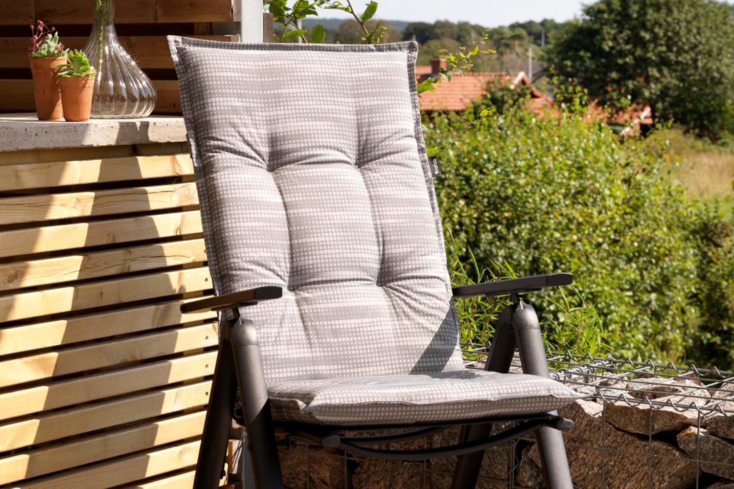 In der Serie Naxos finden Sie Auflagen für Aridondack-Stühle, Positionsstühle und Esstischstühle. Sämtliche Auflagen sind sehr bequem und haben eine Füllung aus Schaumstoff und Faser – und natürlich können Sie zwischen Bezügen in unterschiedlichen Farben und Mustern in Baumwolle/Polyester oder 100 % Polyester wählen.