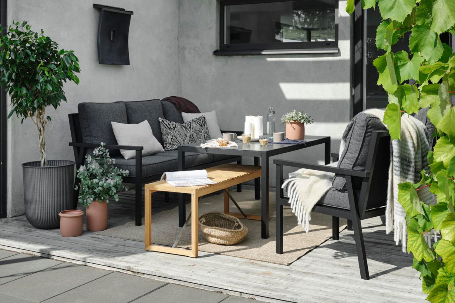 Rana ist eine Serie aus Aluminium mit modernem, entspanntem Stil, die stabilen Komfort bietet. Die perfekte Kombination aus gutem Design, hoher Qualität und einem attraktiven Preis. Durchdachte Einfachheit mit wenigen Komponenten. Kissen mit Olefin-Bezügen. Tischplatte aus lackiertem Glas. Anthrazitfarbenes Textilene.