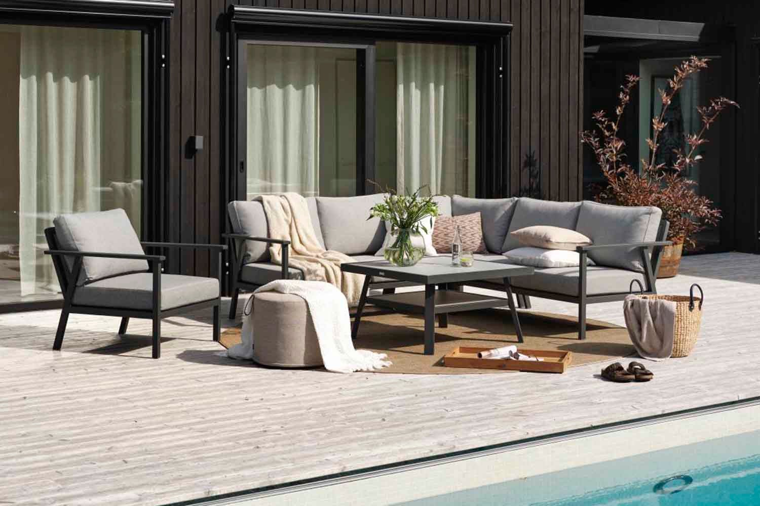Eine moderne und zugleich klassische Serie aus Aluminium, die viele Kombinationsmöglichkeiten bietet. Die runden, weichen Formen dieser neuen Serie kreieren eine einladende, gemütliche Optik, bei der die Details im Zentrum stehen. Rahmen aus weiss, grauem oder khakifarbenem Aluminium.