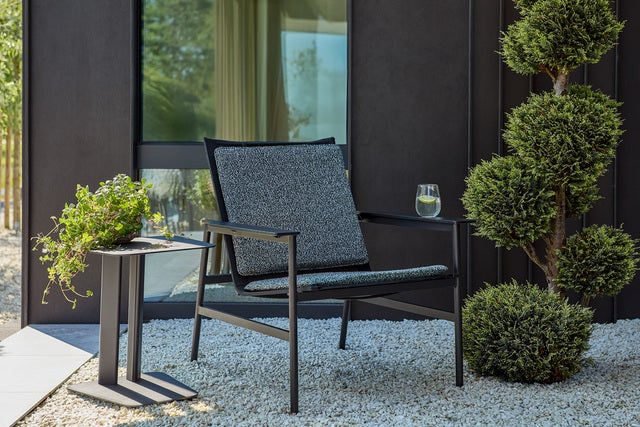 Soro bietet Komfort – egal ob allein stehend oder als Teil einer Sofagruppe. Der einladende Sessel hat breite Armlehnen und weiche Kissen aus Stoff mit federnder Füllung. Das Rückenkissen wird mit einer Gewichtsstütze an Ort und Stelle gehalten, und der Sitz aus Textilene sorgt für ein luftiges Gefühl. Das Ergebnis ist ein Sessel, der immer zum Entspannen einlädt.