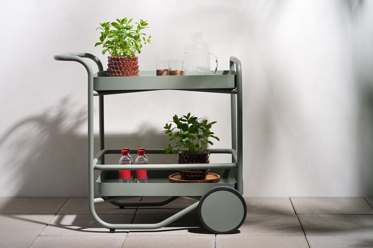 Mehr als ein Serviertisch – der Trolly ist ein multifunktionales Statement-Piece für das moderne Leben im Freien. Inspiriert vom skandinavischen Design, kombiniert es weiche Linien mit intelligenter Funktion. Verwenden Sie es als Servierwagen, Beistelltisch oder heben Sie die Tabletts ab, um sofort zu servieren. Harmonische Übergänge zwischen Karosserie, Unterlegscheiben und Rädern werten das vielseitige Design auf. Entwurf: Johan Skoogh.