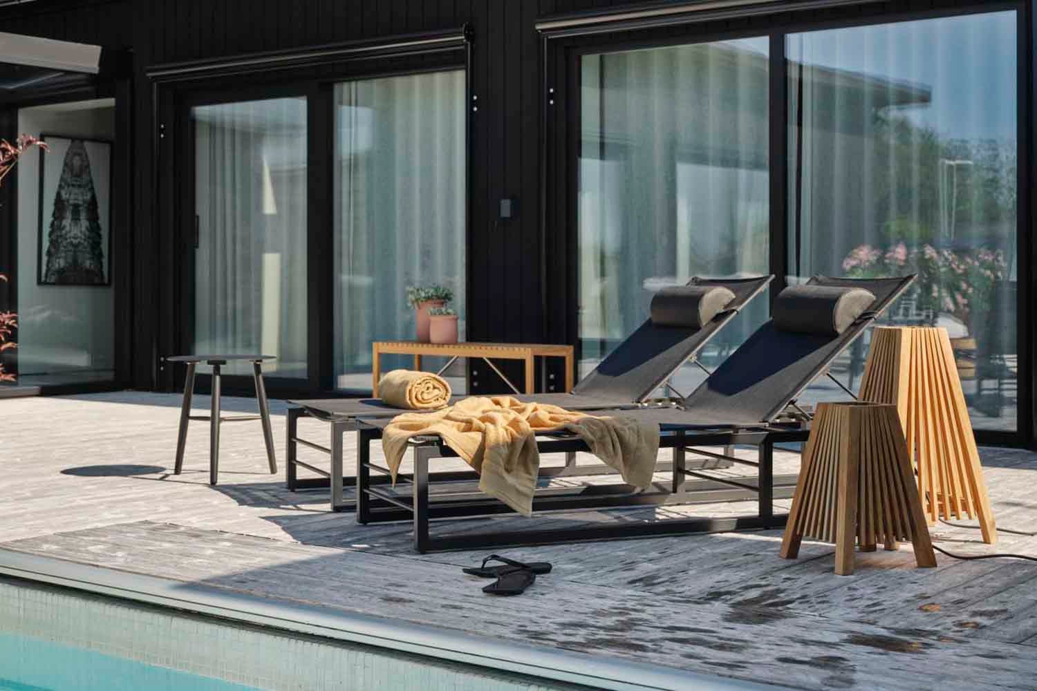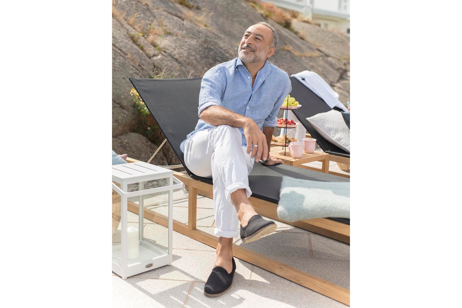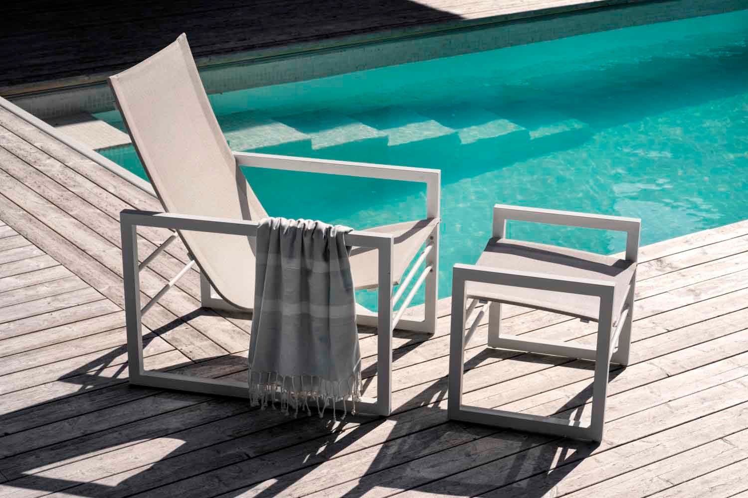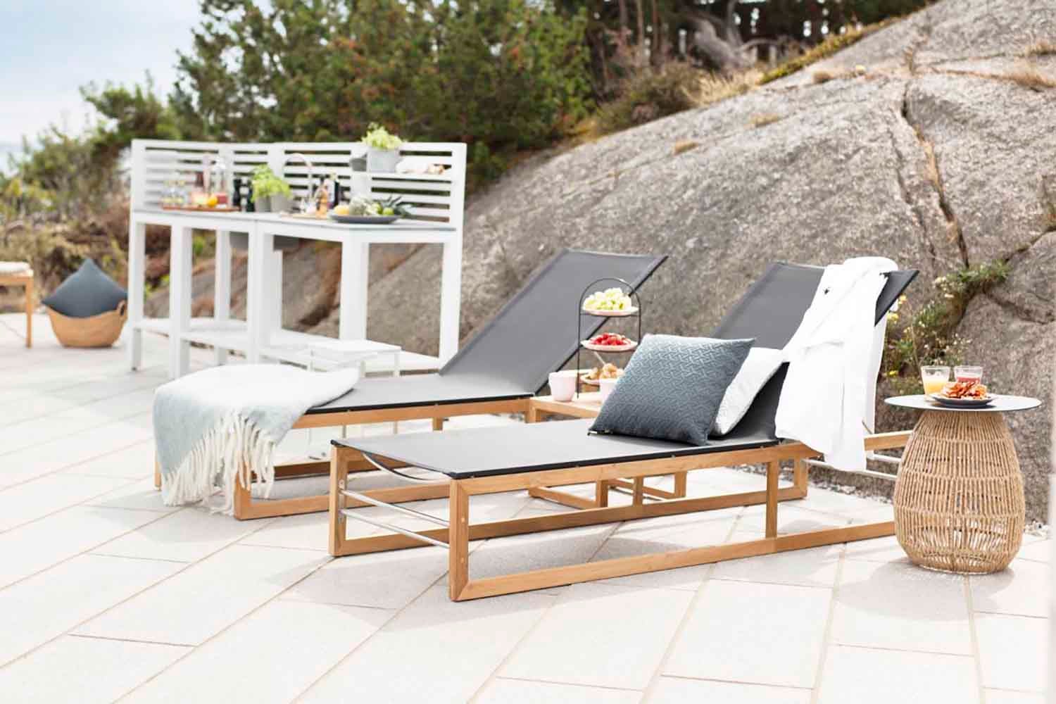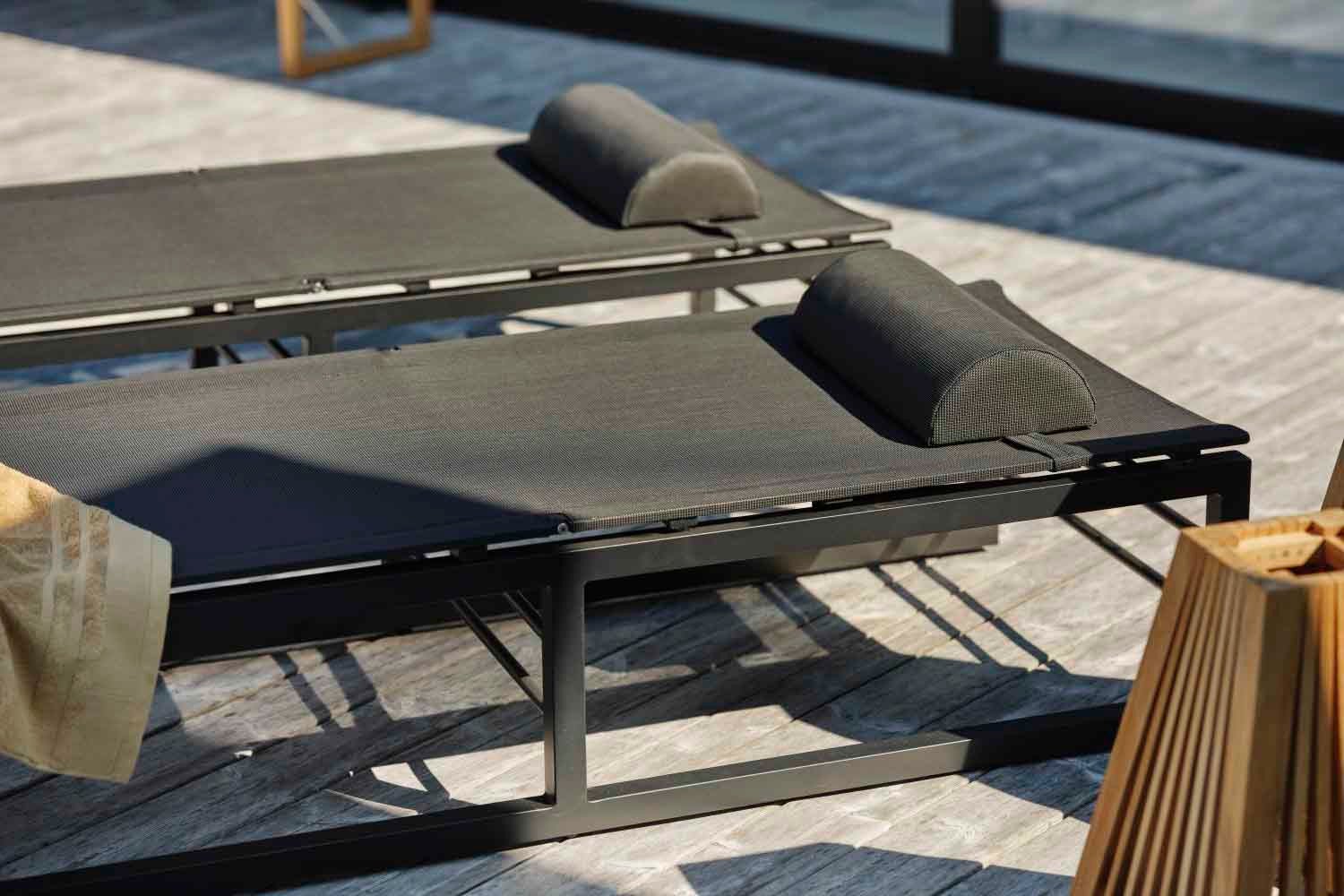Viele der verschiedenen Einheiten sind sowohl in Aluminium in Kombination mit Textilen als auch Teakholz in Kombination mit Edelstahl erhältlich.