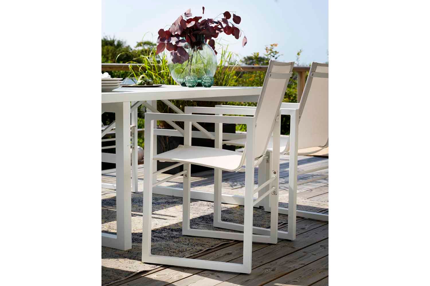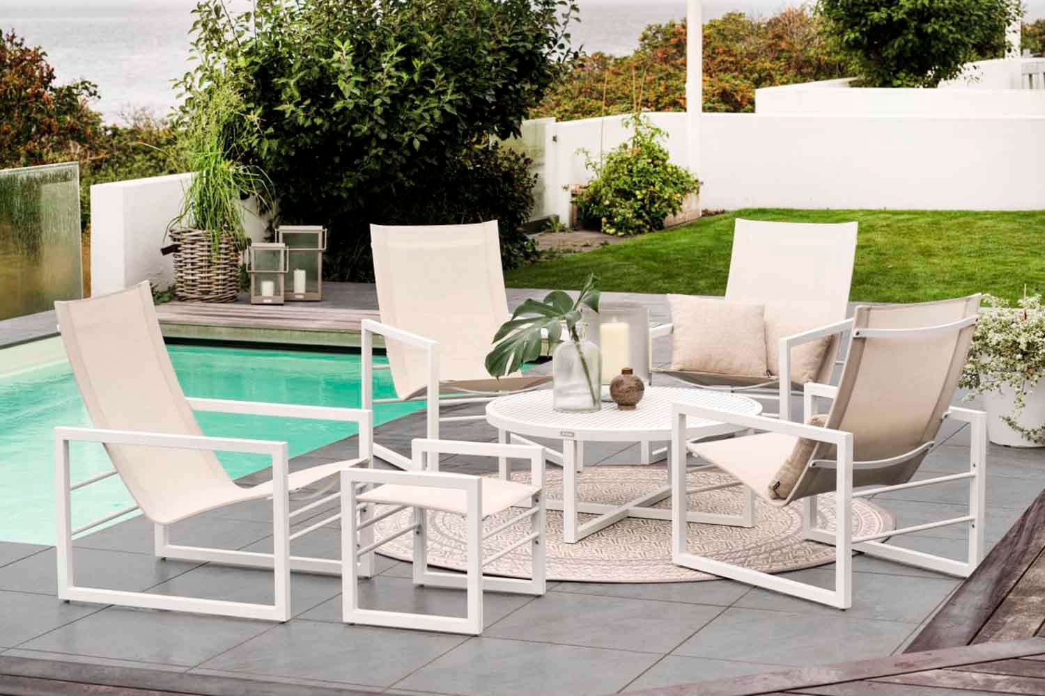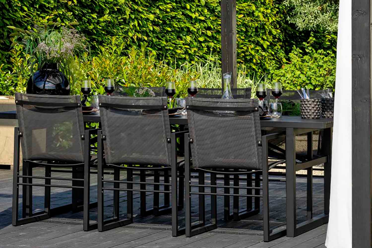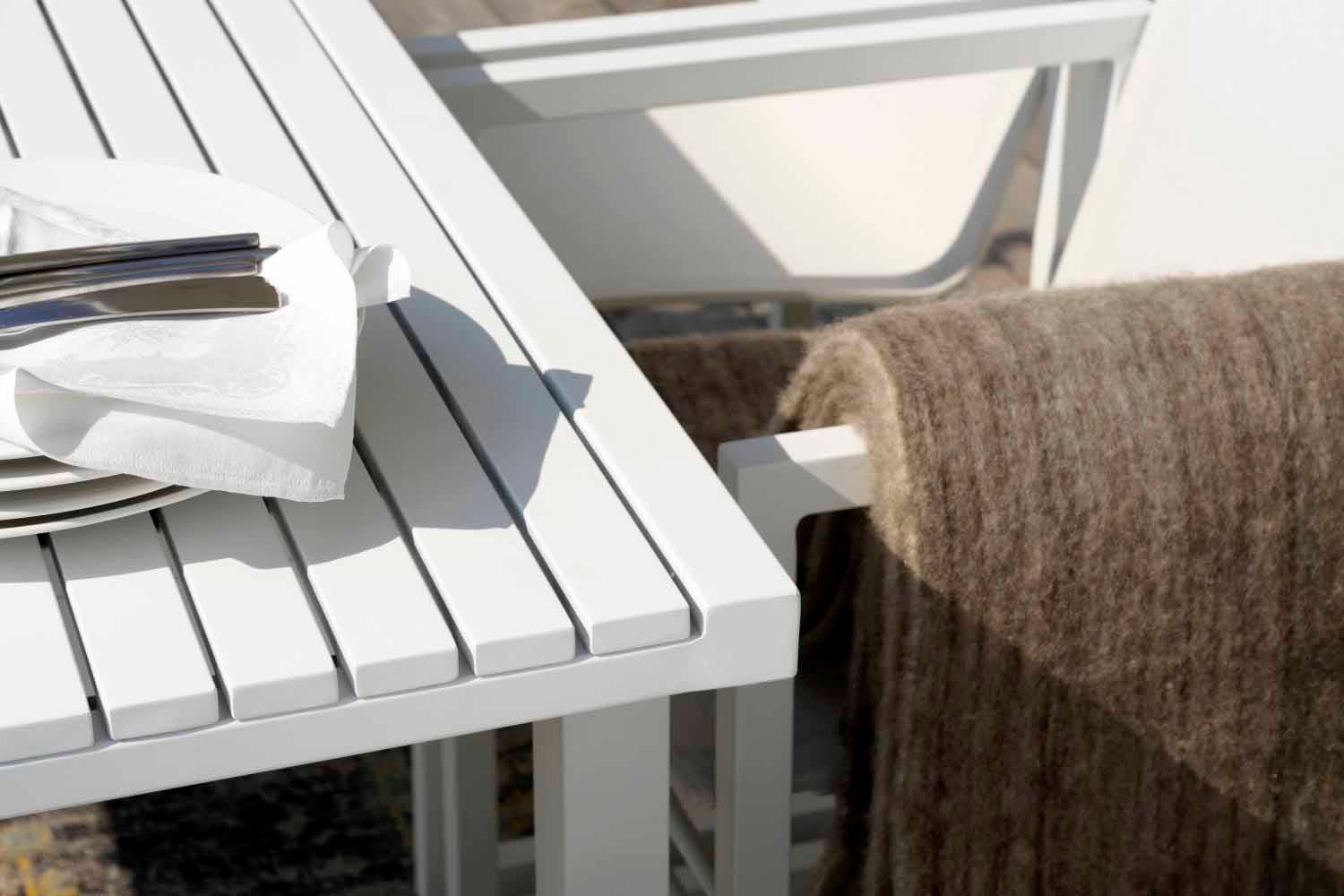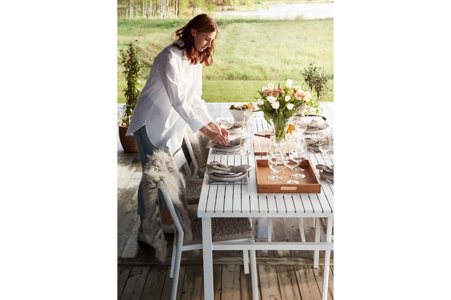 Diese Serie besticht durch die nordische Formensprache und das elegante, moderne Design. Vom großzügigen Esstisch, der Platz für Familie und Freunde bietet, bis zu bequemen Stühlen, Beistelltischen, Loungesesseln und vielem mehr, die Ihre Terrasse oder Veranda zum perfekten Ort zum Entspannen und zum gemütlichen Beisammensein machen.
